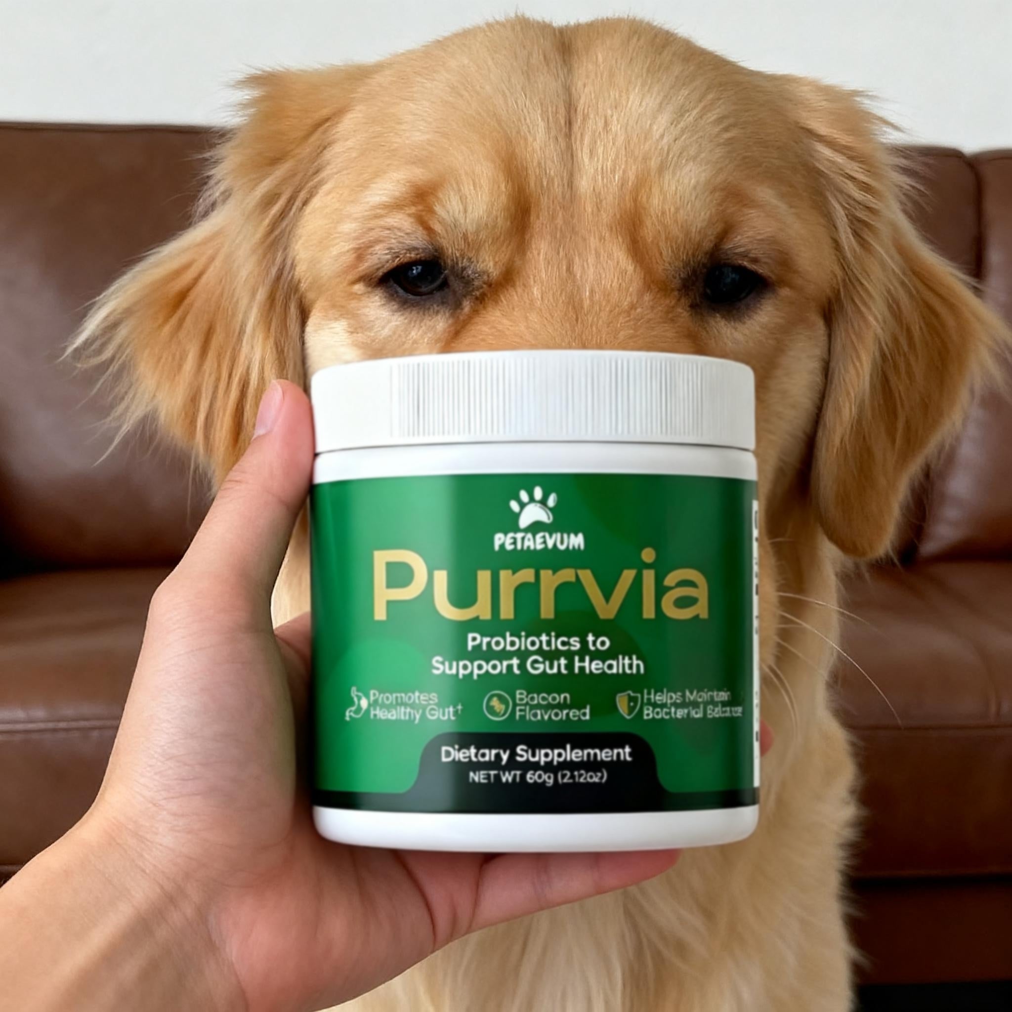 Purrvia is an advanced probiotic and longevity supplement specifically formulated to support your pet's overall health, digestion, and vitality. It contains a blend of beneficial bacteria, antioxidants, and essential nutrients designed to promote a healthier, longer life for your dog or cat.