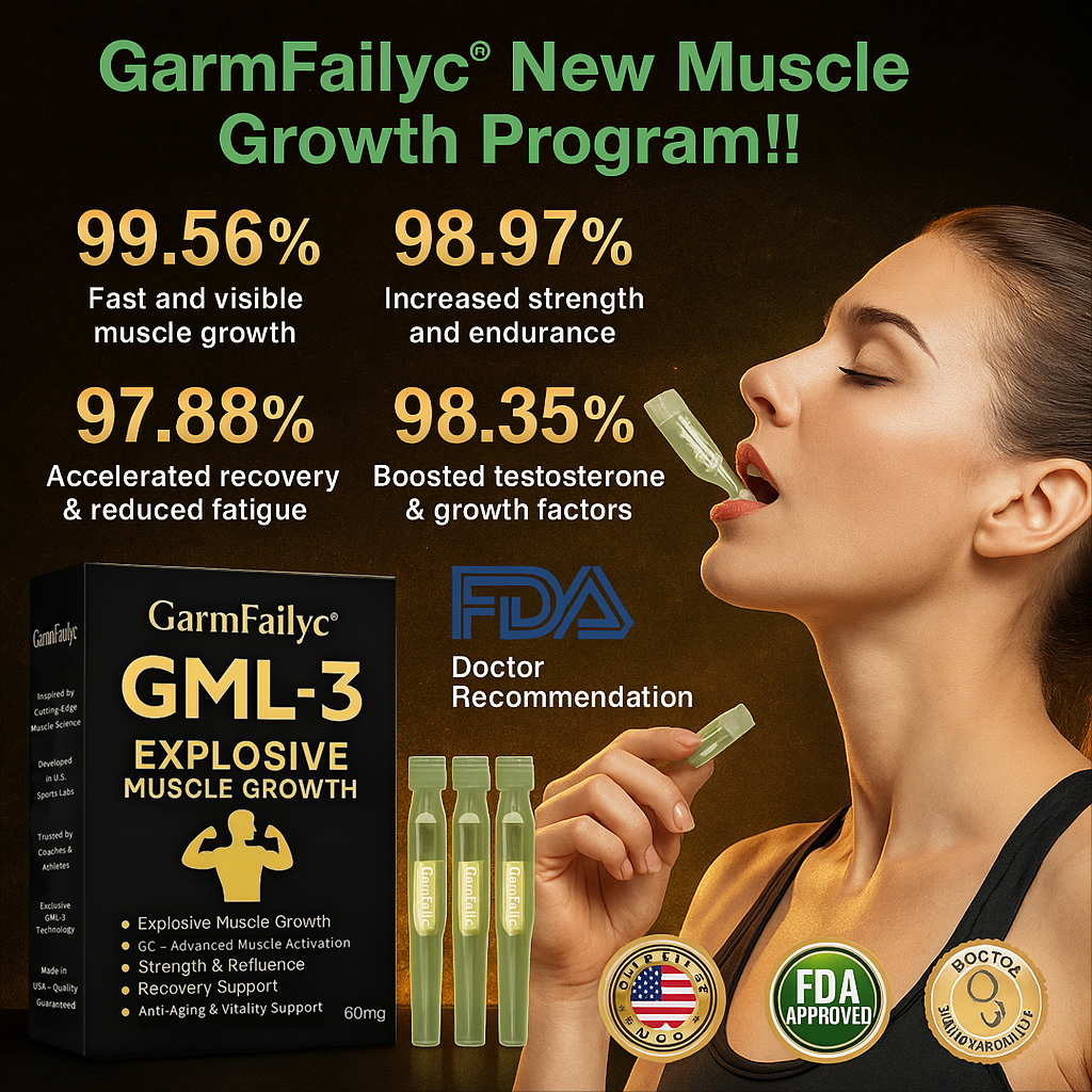 đȘ GarmFailycÂź GML-3 Six-in-One Metabolic Oral Solution â No injections, no exhausting training. Just 1 small vial a day to fuel 24/7 protein synthesis, activate full metabolism, and turn food into muscleânot fat. See visible results in as little as 7 days: bigger arms, stronger chest, explosive power. FDA-certified, safe, and side-effect free, with extreme recovery so you wake up fully recharged after even the toughest workouts. Donât waste months on protein powders or ineffective supplementsâGML-3 builds muscle fast, intense, and astonishingly effective. â ïž Stock sells out dailyâonly 97 bottles left today. Miss it now, and you may wait another 6 months!
